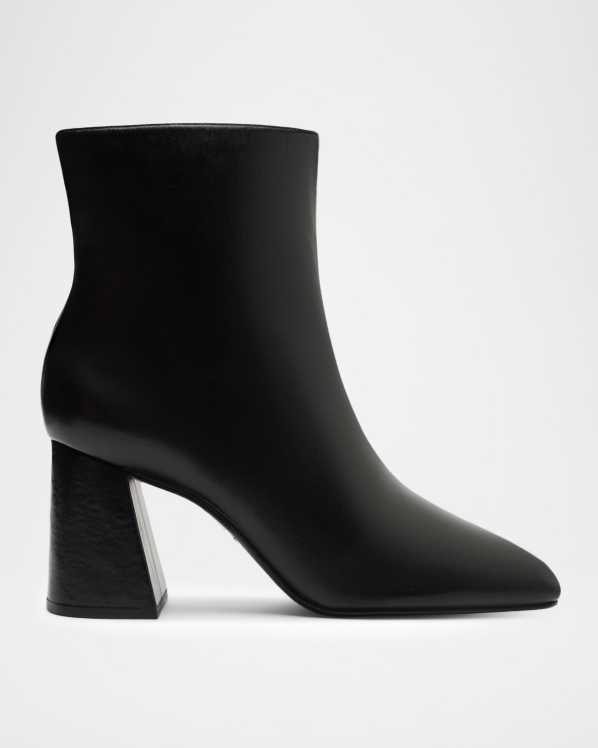 Schutz "Leia" ankle booties in smooth calfskin leather are sleek from every angle. Features a strong heel and square toe, creating a silhouette that stands out. Style the pair with a leather trench, cropped pants, or a slip dress. Clean, commanding, and luxe to the core, these "Leia" booties are not just an outfit finisher-they're the whole point. 3.25 in / 85 mm architectural block heel Square toe Zip closure for easy on/off Leather outsole Lining: Synthetic Spot clean Made in Brazil