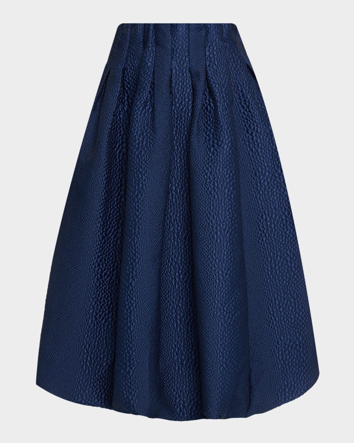 Sea "Fayetta" embossed paneled midi skirt finished with a bubble hem and pleating High rise Aline silhouette Hem falls below the knee Zip closure Polyester Lining: Cotton Dry clean Imported