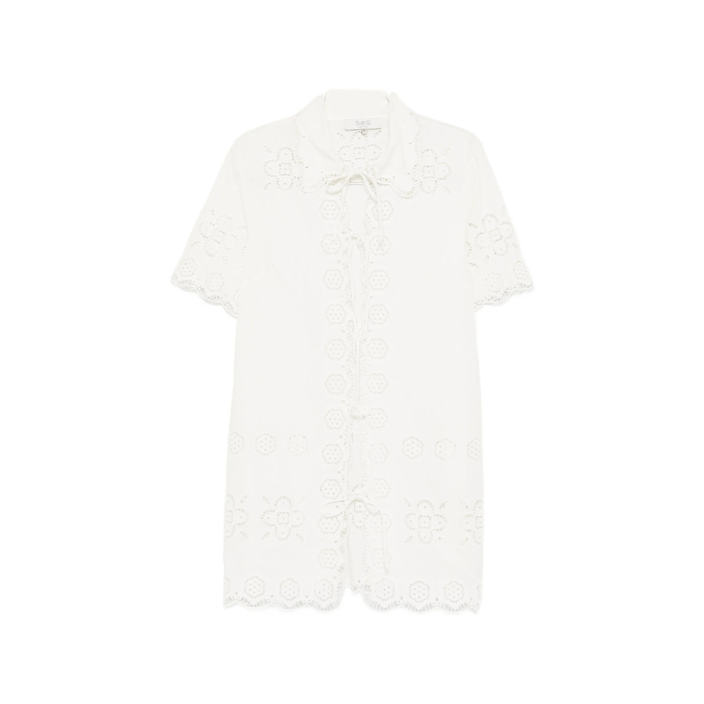 white floral pattern lace-up fastening short sleeves