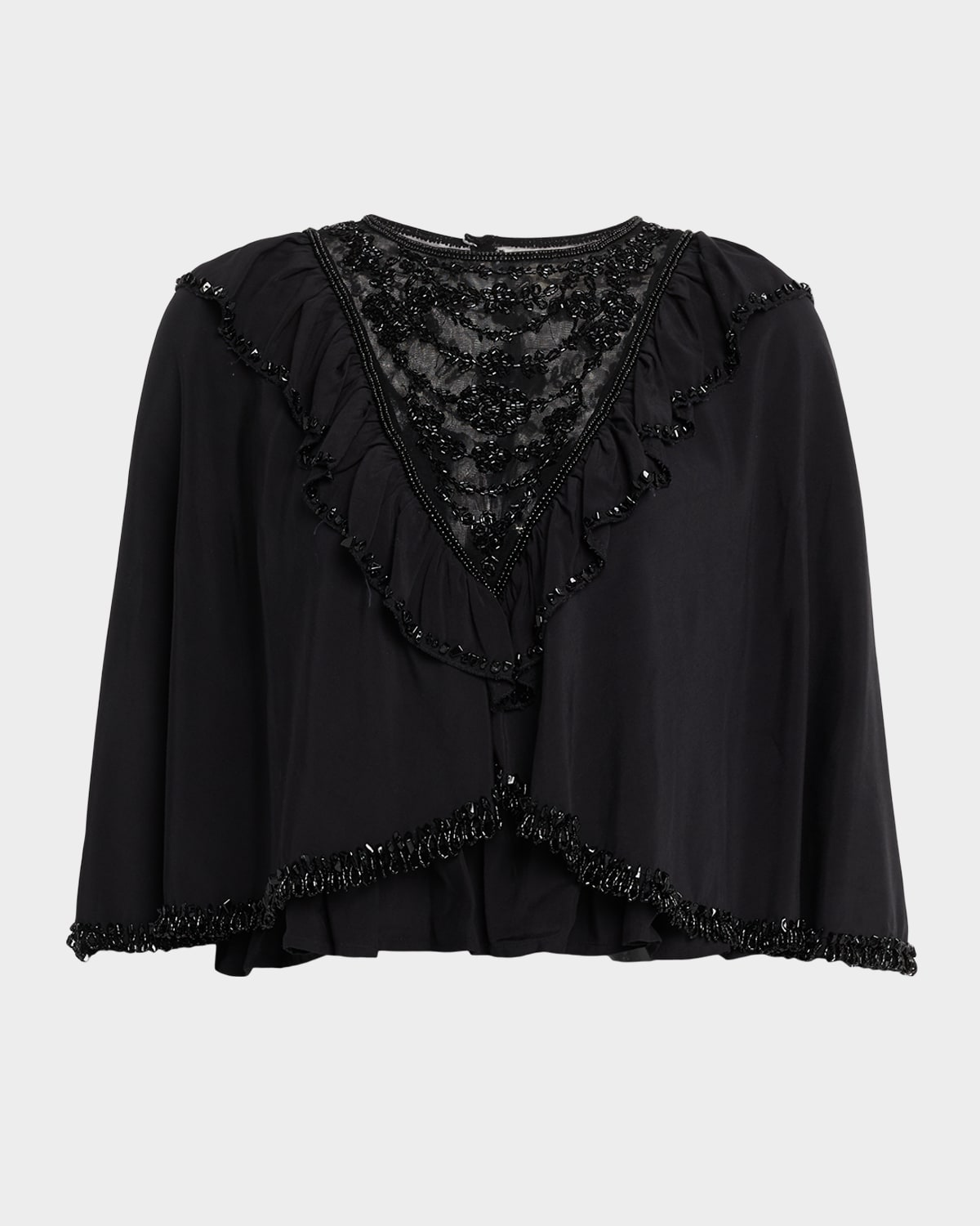 Sea's "Shanna" blouse adds a touch of glamour to any look with its intricate beading and lace paneling Crew neckline Short sleeves; approx. 13.5"L Loose fit Cropped length Back keyhole closure Viscose/nylon/polyamide Dry clean Imported