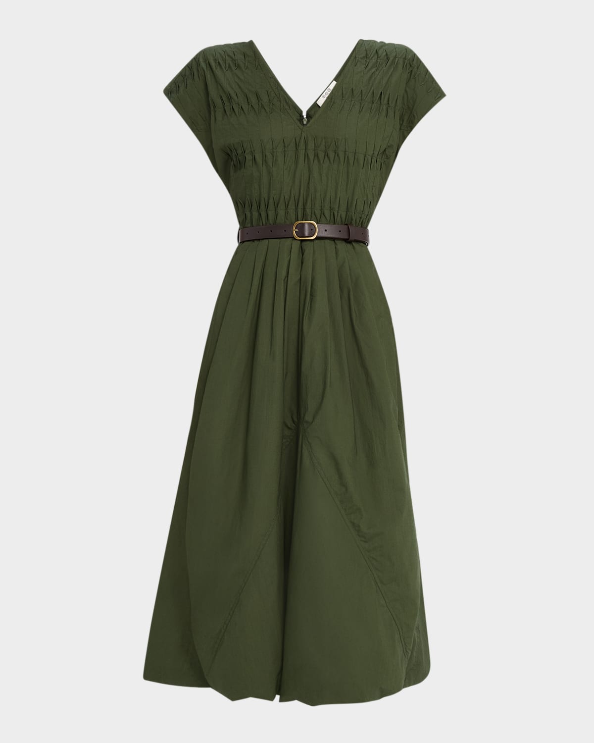 Sullivan Belted Short-Sleeve Bubble Midi Dress