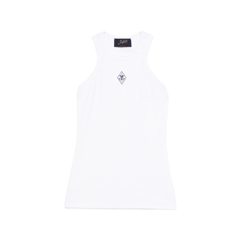 white logo print sleeveless round neck