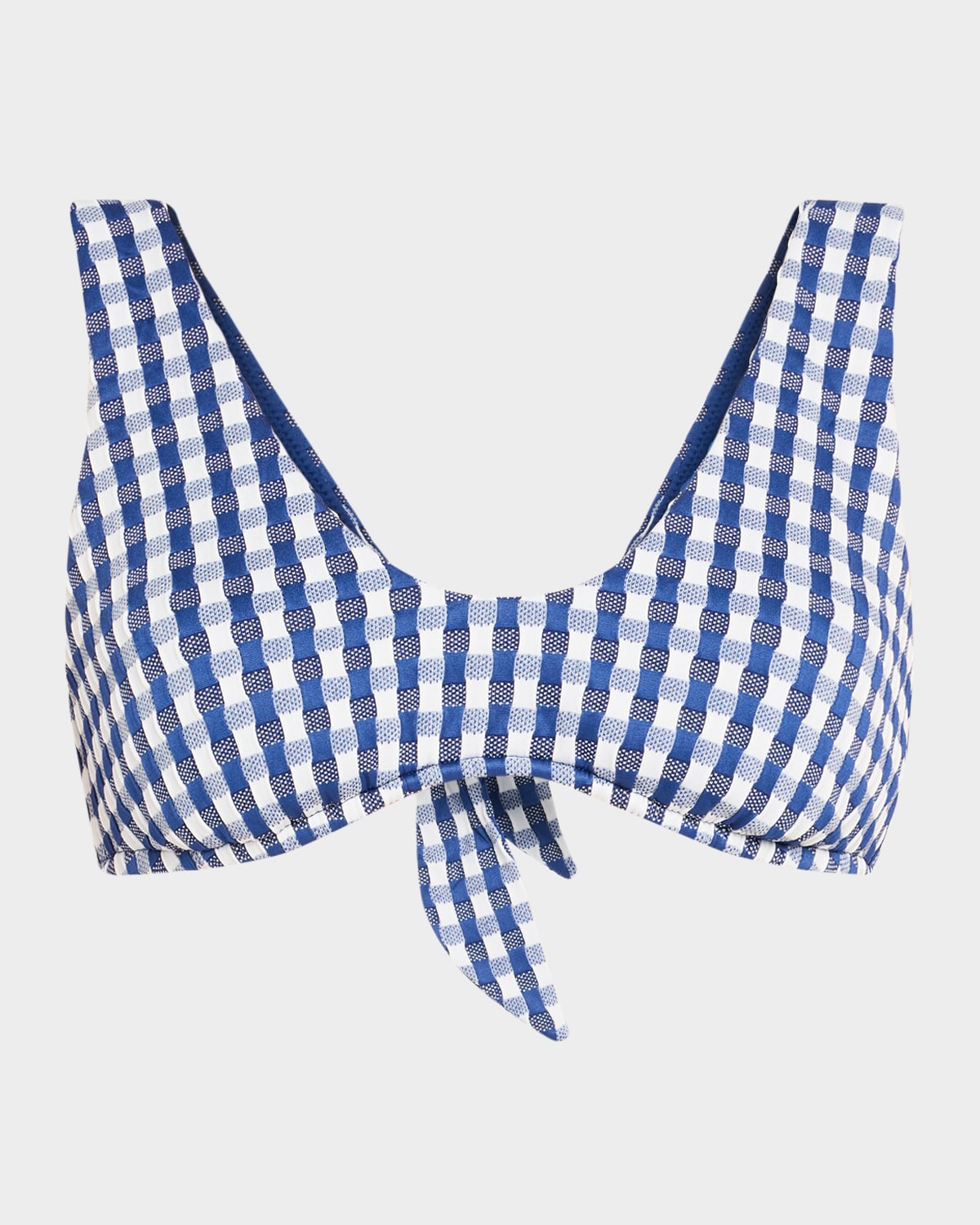 Seafolly "Bella" multifit longline bikini top in a textured gingham print Scoop neckline Removable cups for shape and support Midback selfties Nylon/polyamide/polyester/elastane Lining: Recycled nylon Hand wash Imported Bottoms sold separately