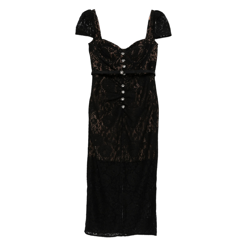 black lace detail rear zip and hook fastening button embellishment cap sleeves ribbon detail sweetheart neck