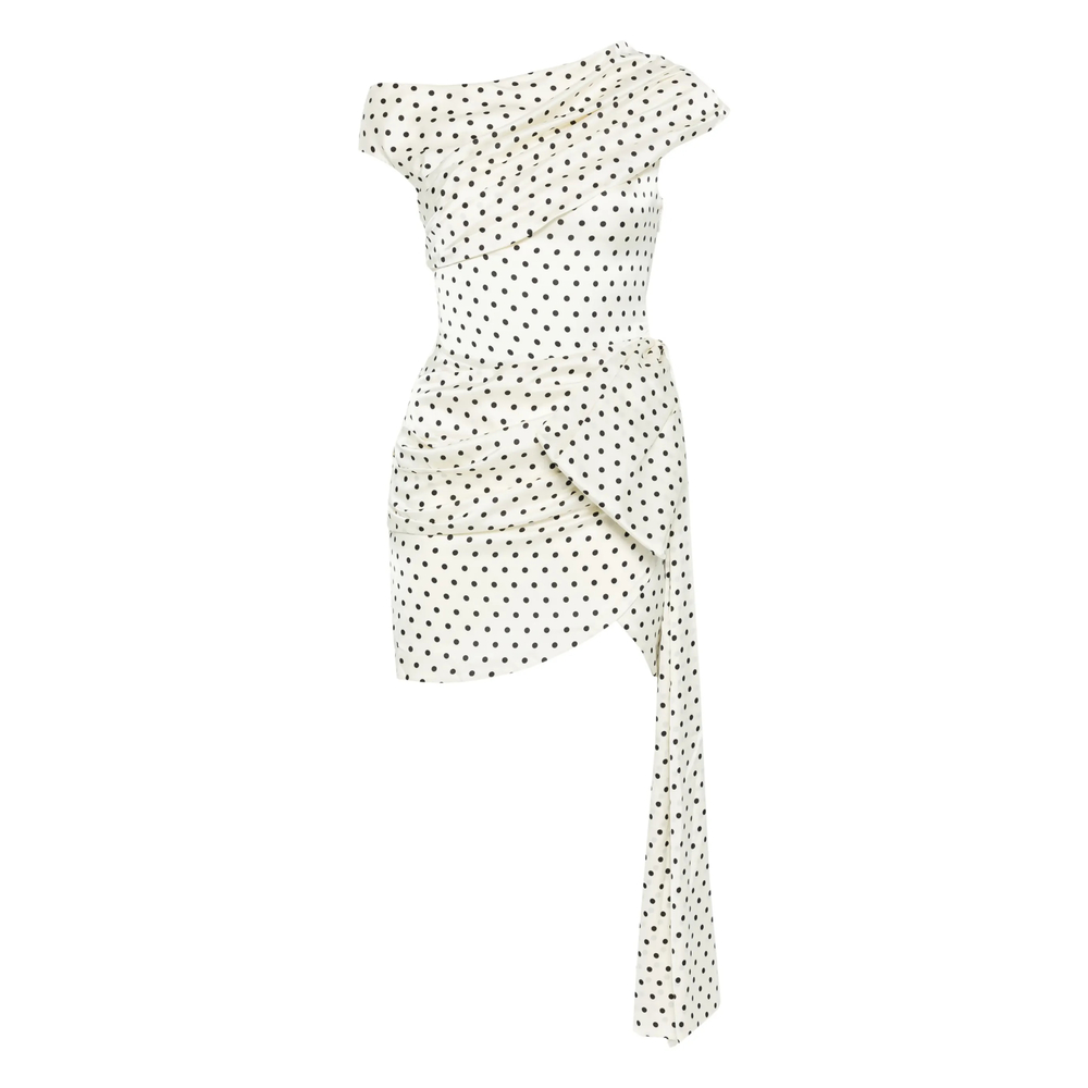 cream polka-dot print draped design one-shoulder asymmetric hem sleeveless