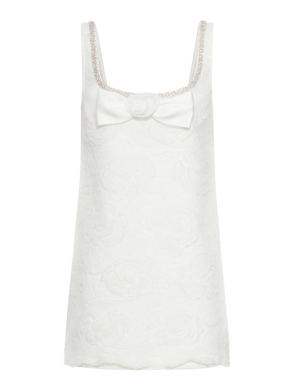 Coupe confortable, fermeture éclair au dos, entièrement doublée, naud, bordure, couleur blanche