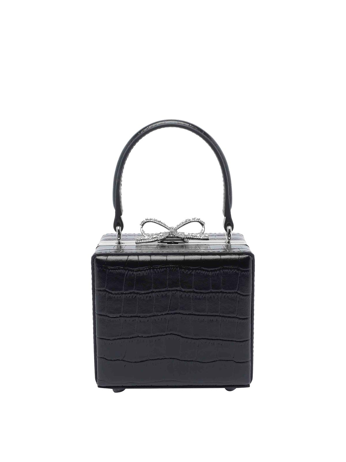 Sac à main autoportrait en forme de crocodile noir avec naud de sac à main entrelacé Nom de la couleur du créateur: noir