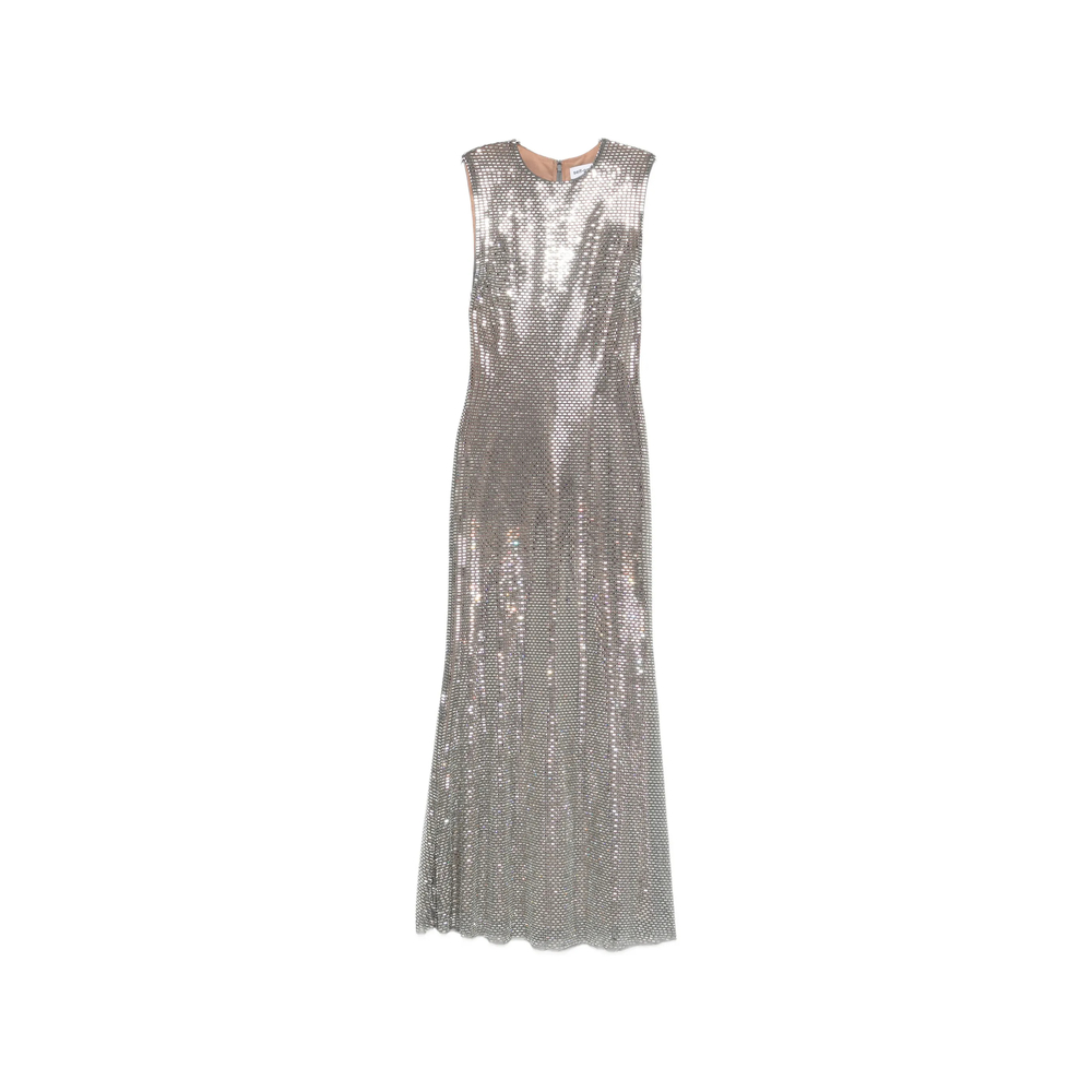 grey embellishment sleeveless round neck fitted construction fitted waist