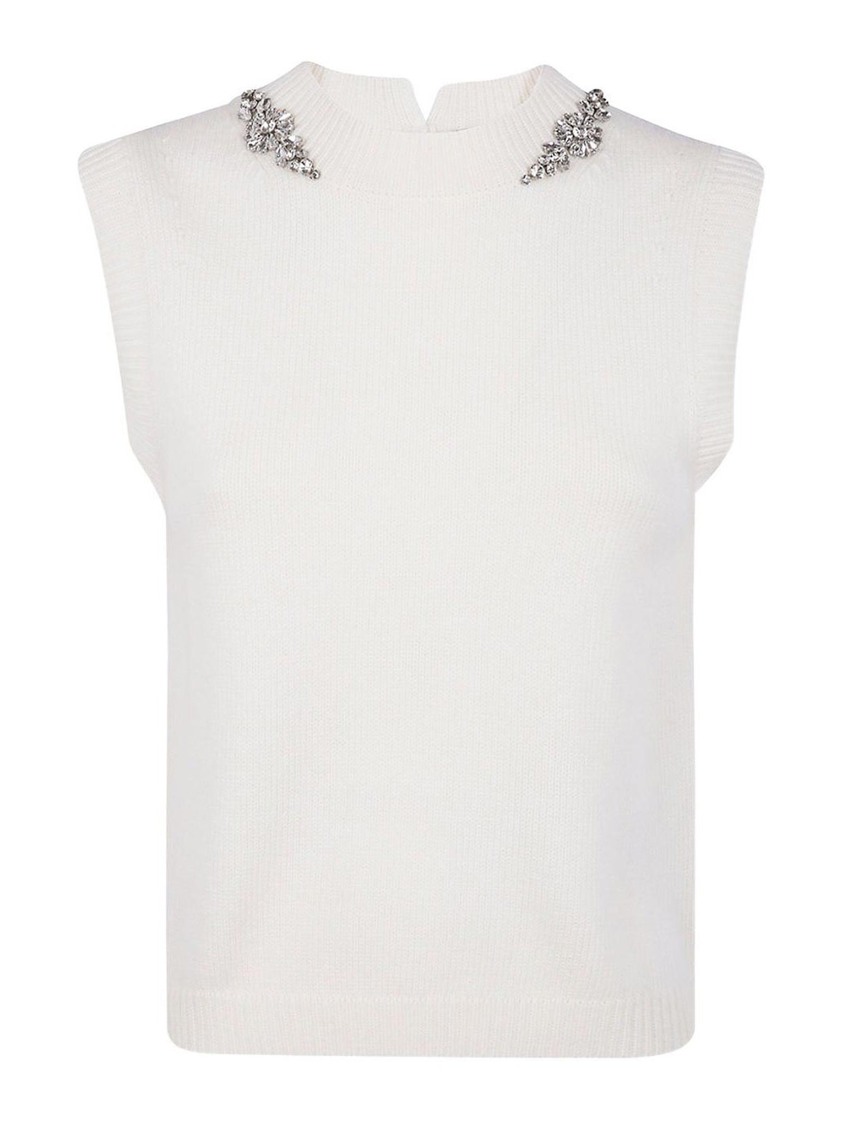 Gilet en maille semi-couture « Alienor » ivoire avec strass