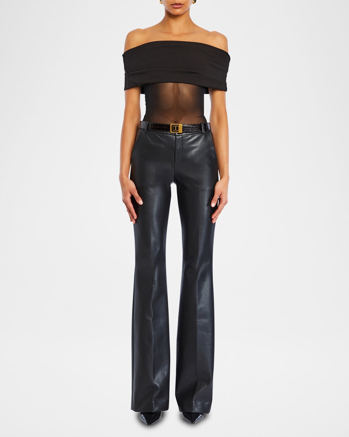 SER.O.YA "Ronja" faux leather (PU/polyester) trousers High rise Full length Straight legs Hidden hook/zip fly; belt loops Polyurethane/polyester Dry clean Imported