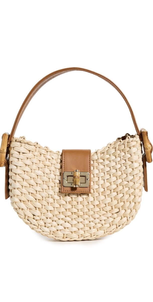 Straw. Fold-over strap with bamboo turn-lock closure. Leather top handle with decorative bamboo buckles. Gold-tone hardware. Lining: Textile. Weight: 13oz / 0.37kg. Imported, Brazil. Measurements: Height: 6in / 15cm Length: 8.75in / 22cm Depth: 2.25in / 6cm Handle drop: 4.75in / 12cm