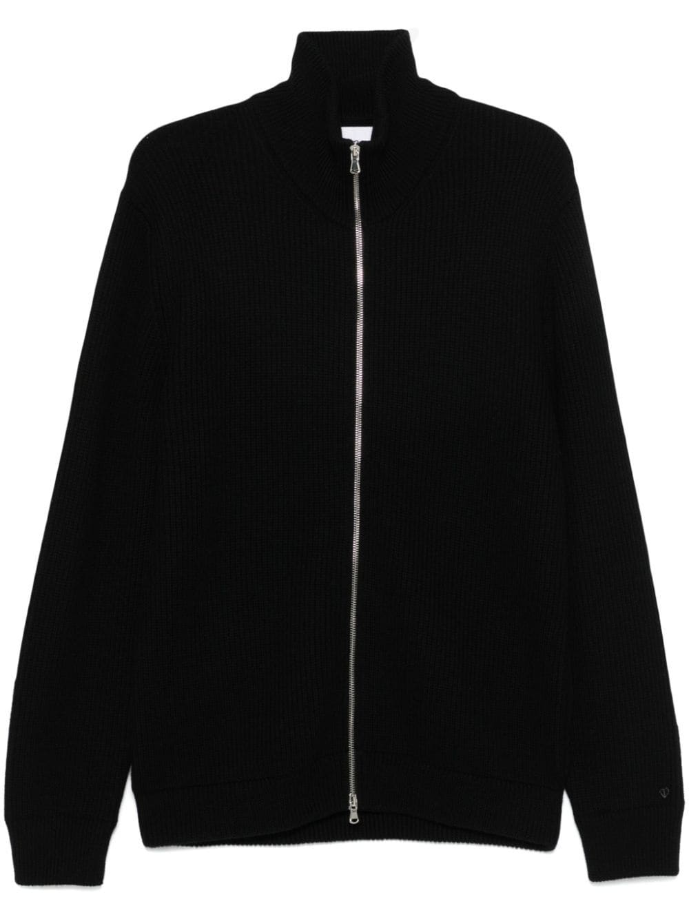 black wool ribbed knit front two-way zip fastening stand-up collar long sleeves straight hem When buying this unisex item, keep in mind that it is graded in standard men's sizing.