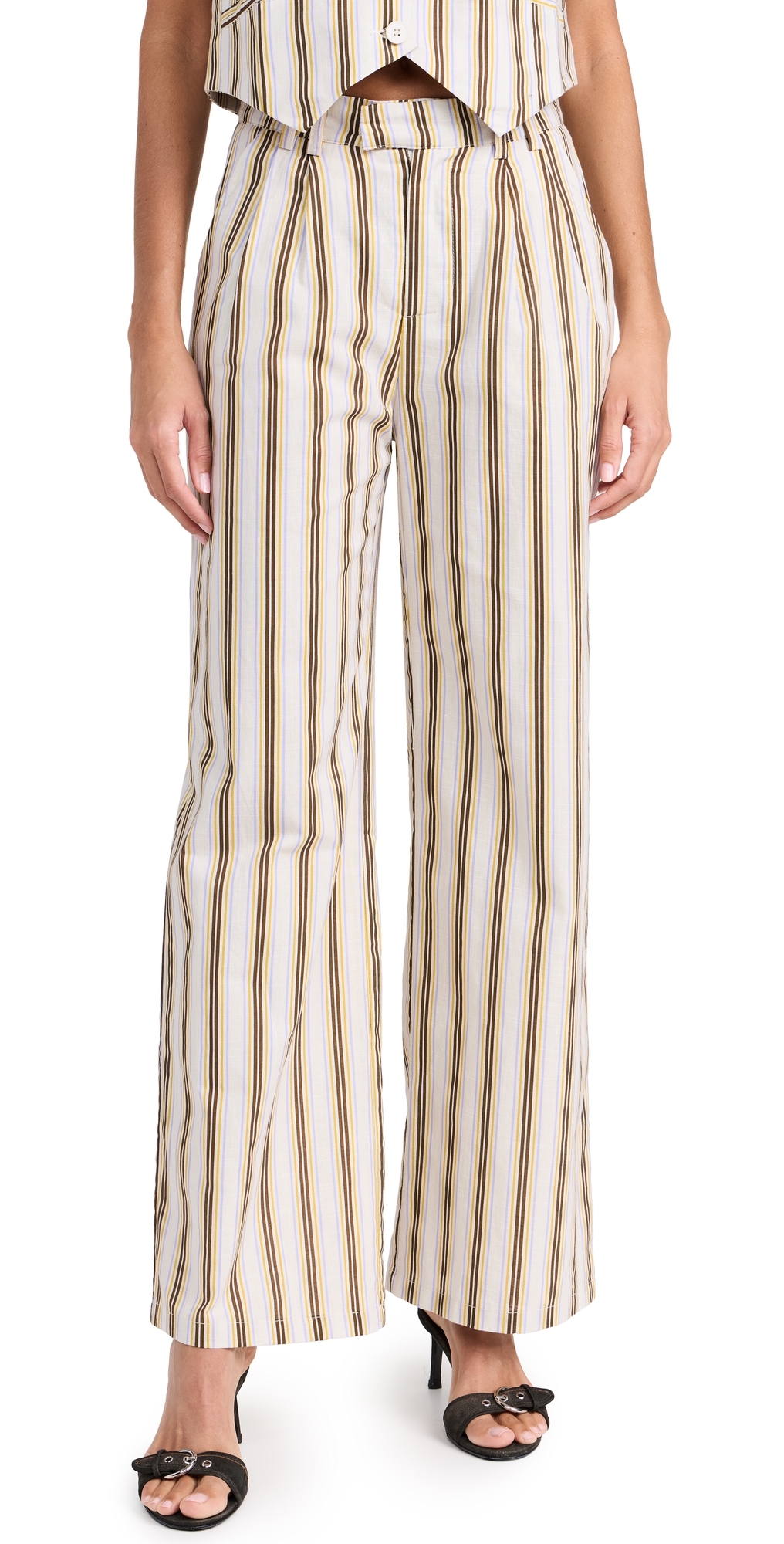 Fabric: Lightweight, non-stretch weave. Stripe print. Hook-and-eye closures at waist, zip fly. Slant hip pockets and welt back pockets. Shell: 100% cotton. Hand wash. Imported, China. Measurements: Measurements from size S Rise: 11.5in / 29cm Inseam: 29.25in / 74cm Leg opening: 22in / 56cm
