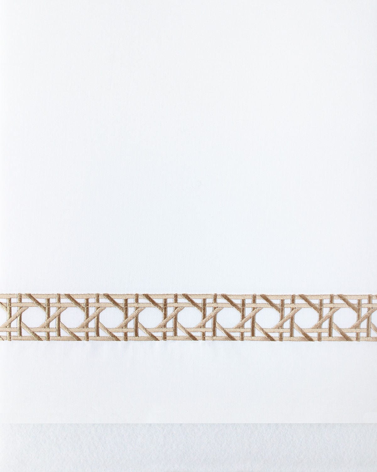 EXCLUSIVELY OURS. 400threadcount pima cotton sheet set with cane embroidery. 4piece set includes full/queen flat sheet, full fitted sheet, and two standard pillowcases. Machine wash. Imported.