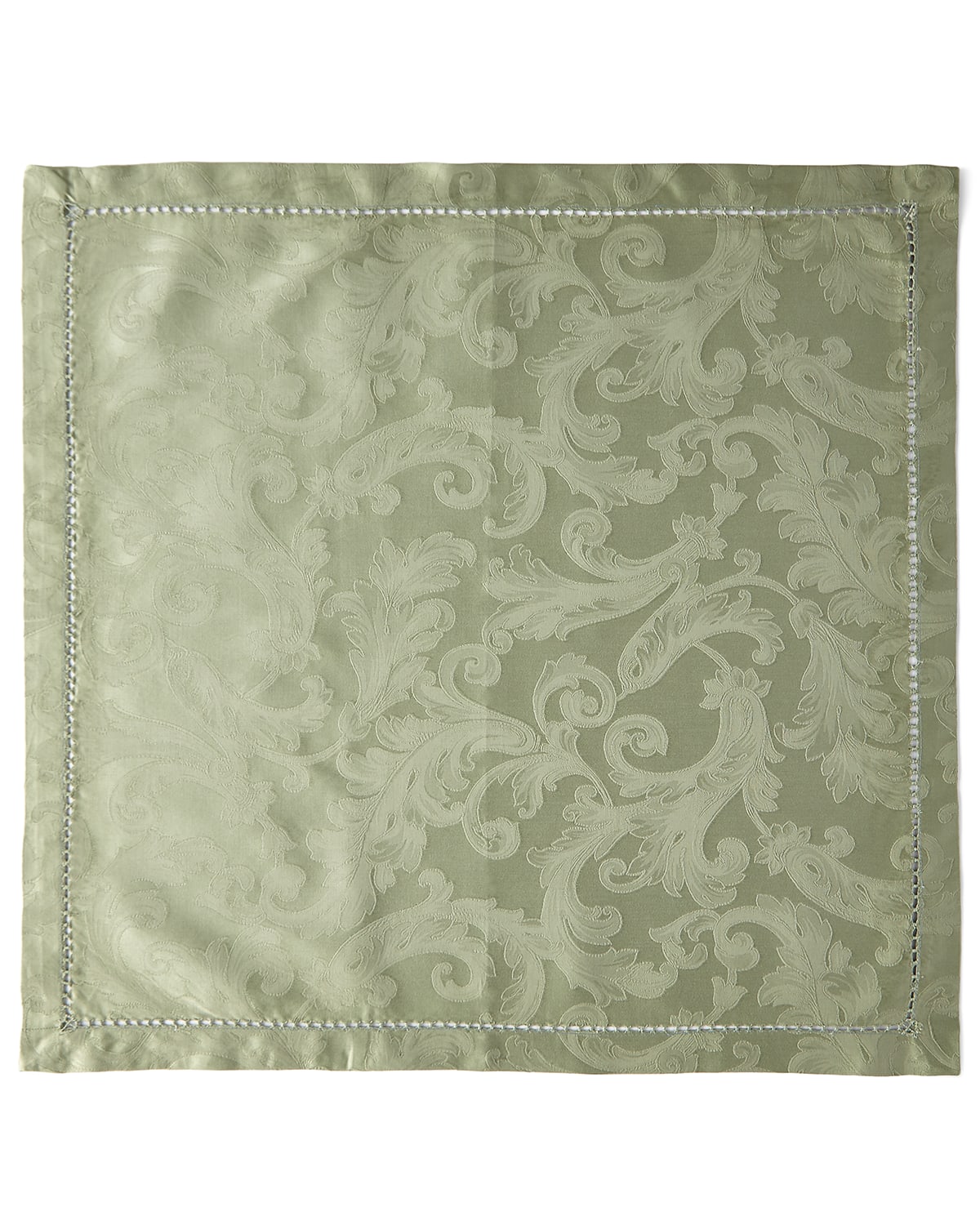 Napkins sold in a set of four; each, 22"Sq Longstaple cotton sateen jacquard. Handdrawn hemstitching. Machine wash. Made in Italy.
