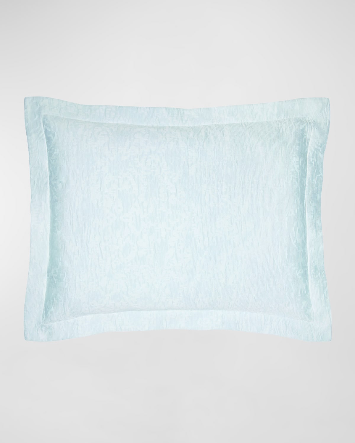 Aldino's dappled texture is created by overlaying an abstract sateen weave pattern over a linear background-realizing a dreamy surface reminiscent of the glistening waters flowing through rocky, mountain creeks. Crafted of cotton Approx. 26"Sq. Sold individually Made in Italy