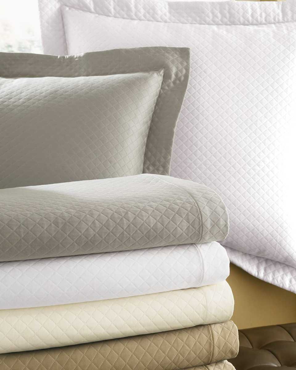 Diamond pique sham has a lustrous sheen and soft finish. Italianwoven, longstaple cotton. Treated to reduce shrinkage. 12" x 16". Machine wash. Made in Italy.