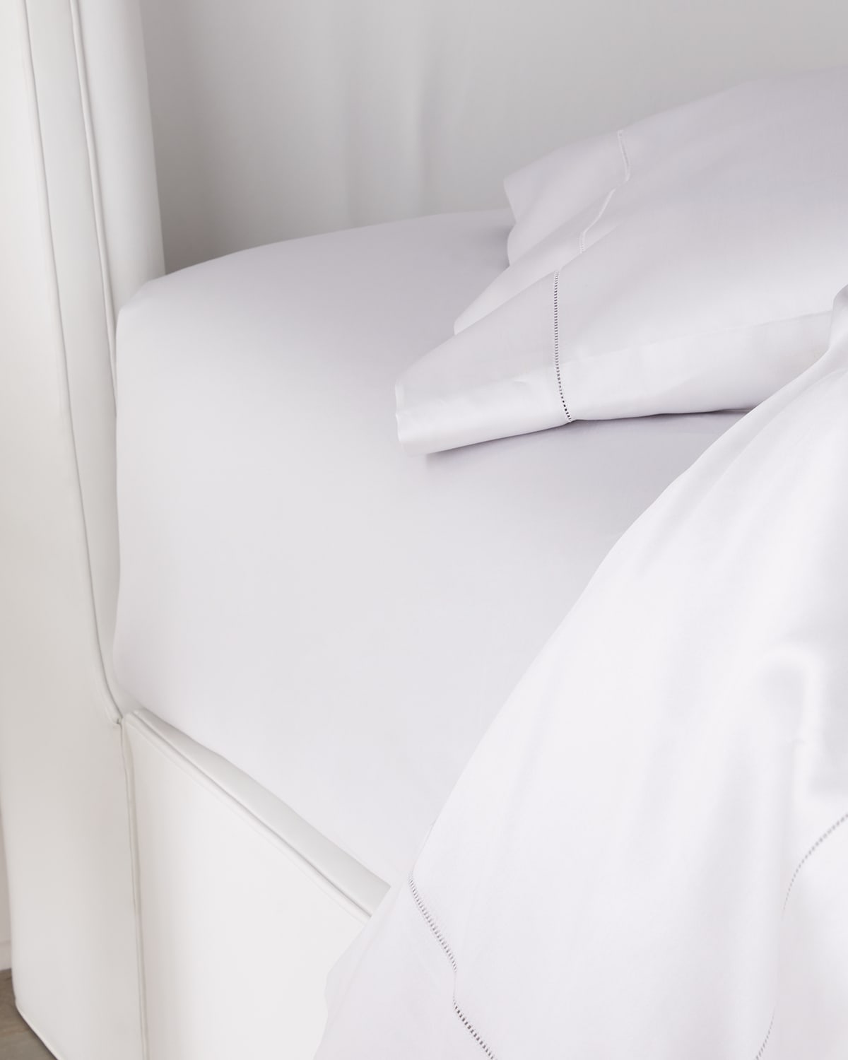 Giza 45 is made of the finest cotton in the world. Grown in the Nile river valley, and woven by the master craftsmen in Italy, it takes preeminence over all others as the luxury linen of utmost distinction. One touch and you will experience the SFERRA Giza 45 difference. Fitted sheet made of Egyptian cotton Approx. 78"L x 80"W with 17"D pocket Machine wash warm Made in Italy