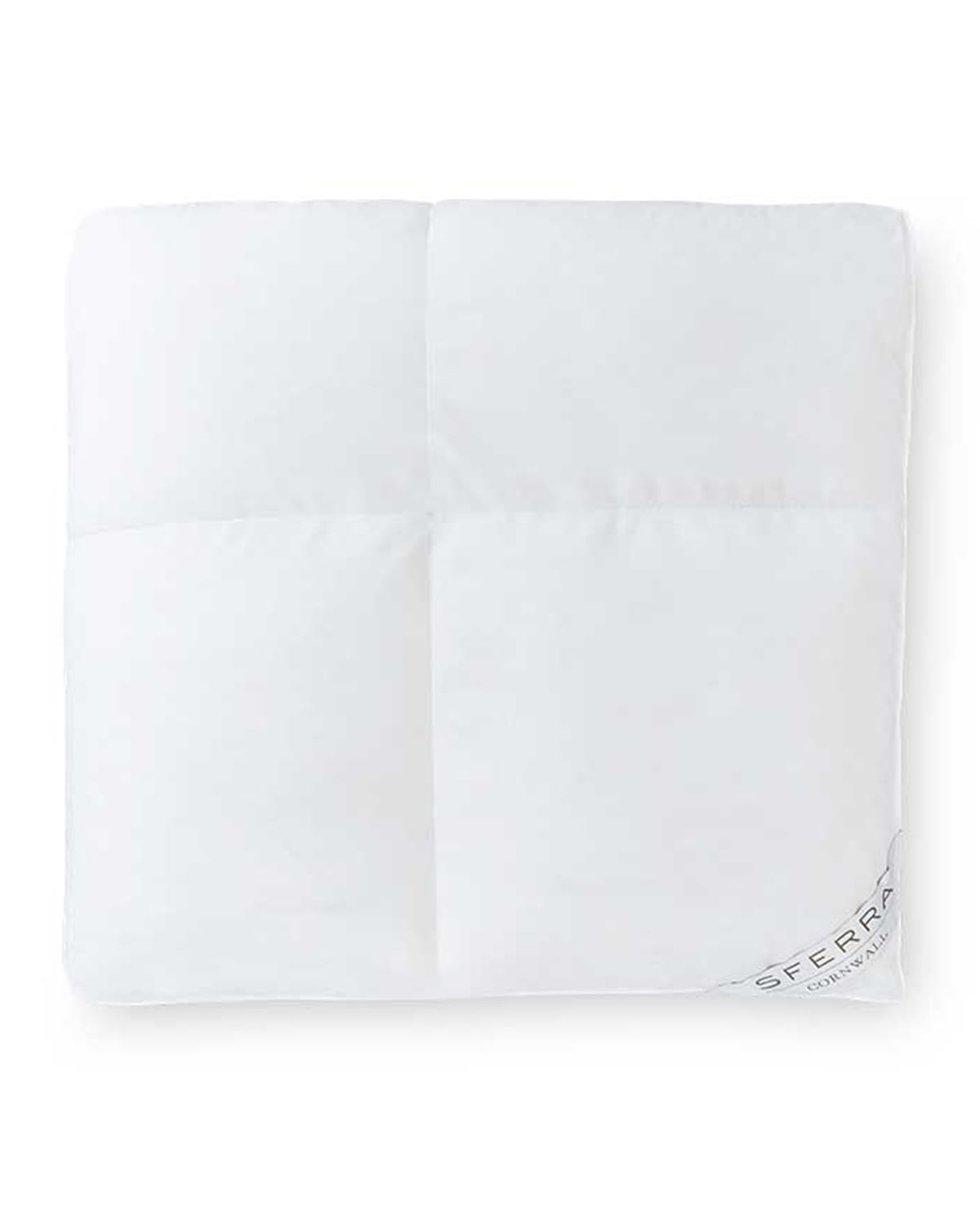 Duvet with 900+ fill power Canadian white goose down. 345 threadcount Germanwoven cotton batiste. Weight: Light 16 oz. Dry clean. 71" x 86". Made in the USA of imported materials.