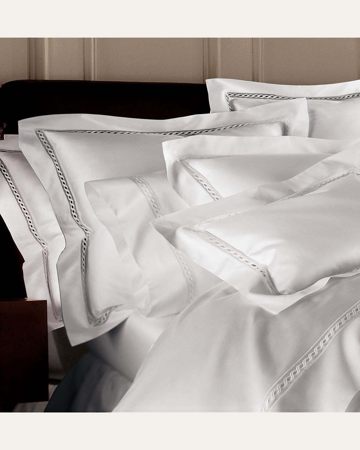 Extralongstaple cotton sateen with a satinlike softness, sheen, and drape is woven in Italy using 1,020 threads per square inch. Cable lace inset. Machine wash. 12" x 16". Made in Italy.