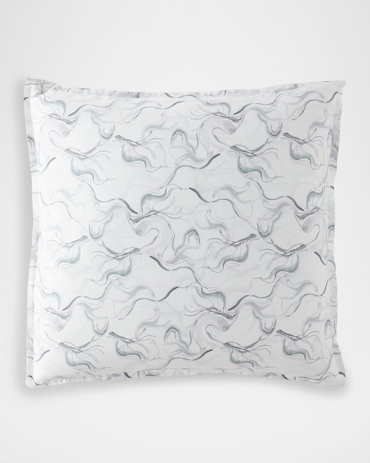 In a mesmerizing dance of gentle brushstrokes, a cool palette of slate twists and curves across a canvas woven from Italian longstaple cotton sateen to give birth to Muro. This collection embodies a graceful beauty, evoking the tranquil flow of water, soft light glistening upon the surface, casting delicate reflections. Made of cotton Approx. 21" x 36" Machine wash warm Made in Italy