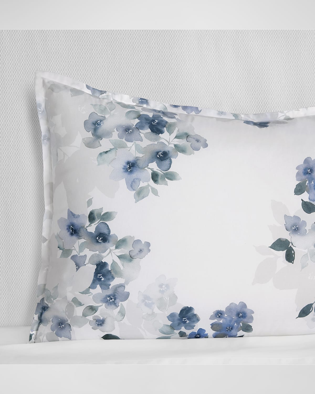 Afternoons in the garden inspire Primavera, an enchanting collection crafted from soft percale fabric. Gentle handpainted brushstrokes bring to life a scene of radiant blue florals, softened by sunlight and veiled under shadows. Approx. 21" x 26" Cotton Machine wash warm Made in Italy