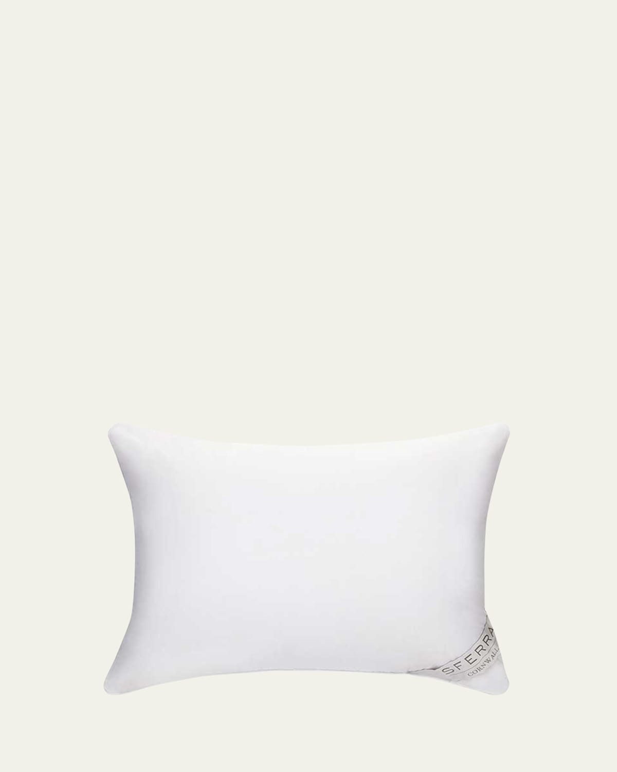 Pillow with 900+ fill power Canadian white goose down. 345 threadcount Germanwoven cotton batiste. Comfort level: Soft 13 oz. Dry clean. 20" x 26". Made in the USA of imported materials.
