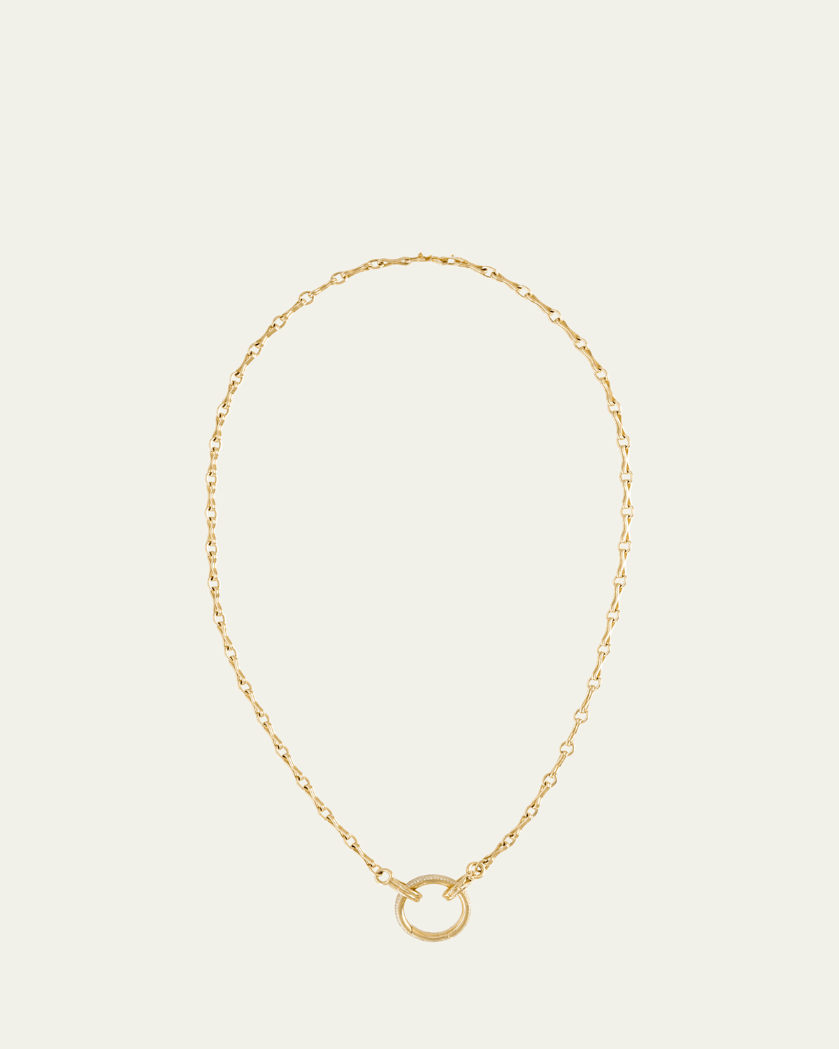 18K Yellow Gold Small Link Chain Necklace with Diamond Key Ring