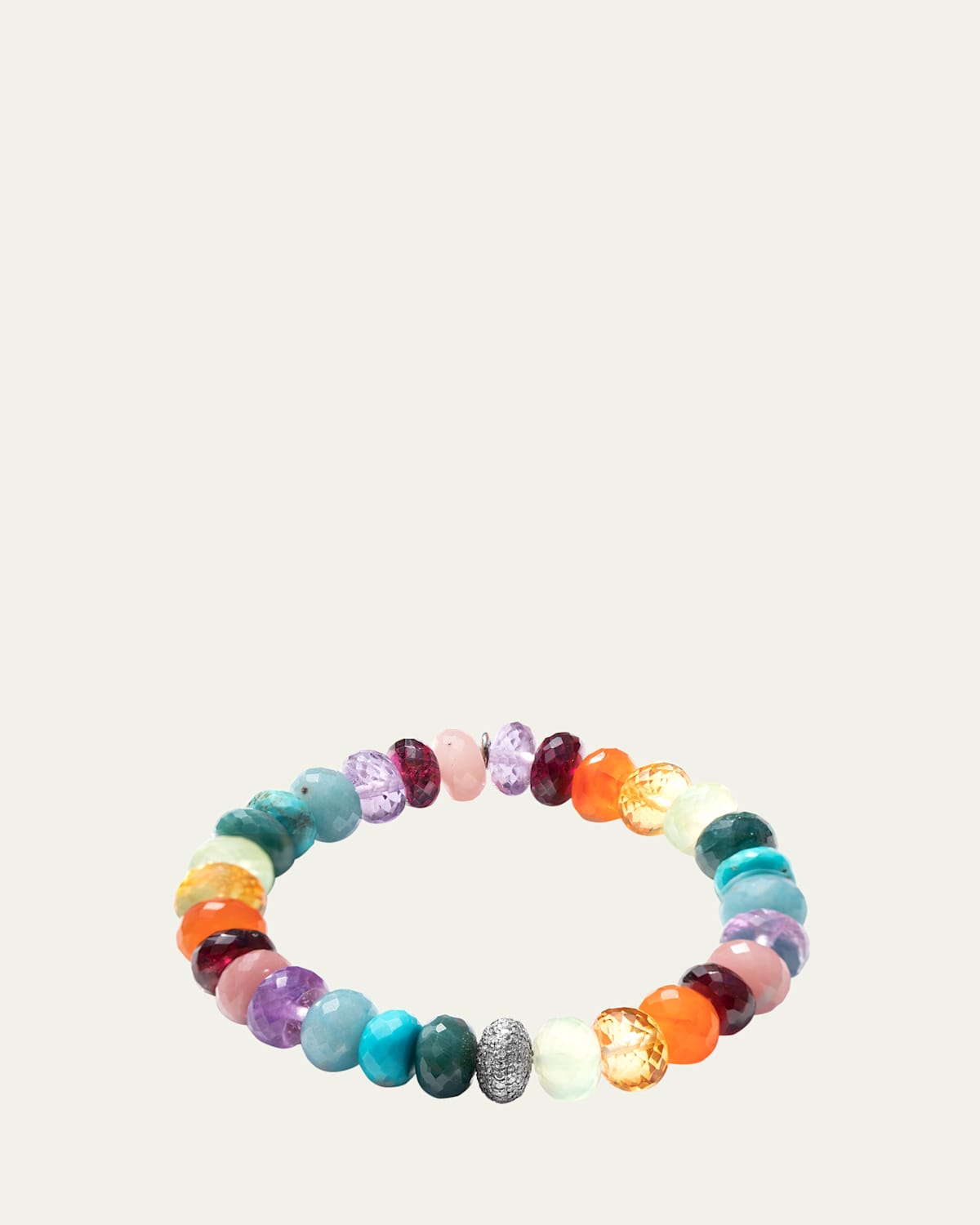 10mm Multi Rainbow Beaded Bracelet with 1 Pave Diamond Bead