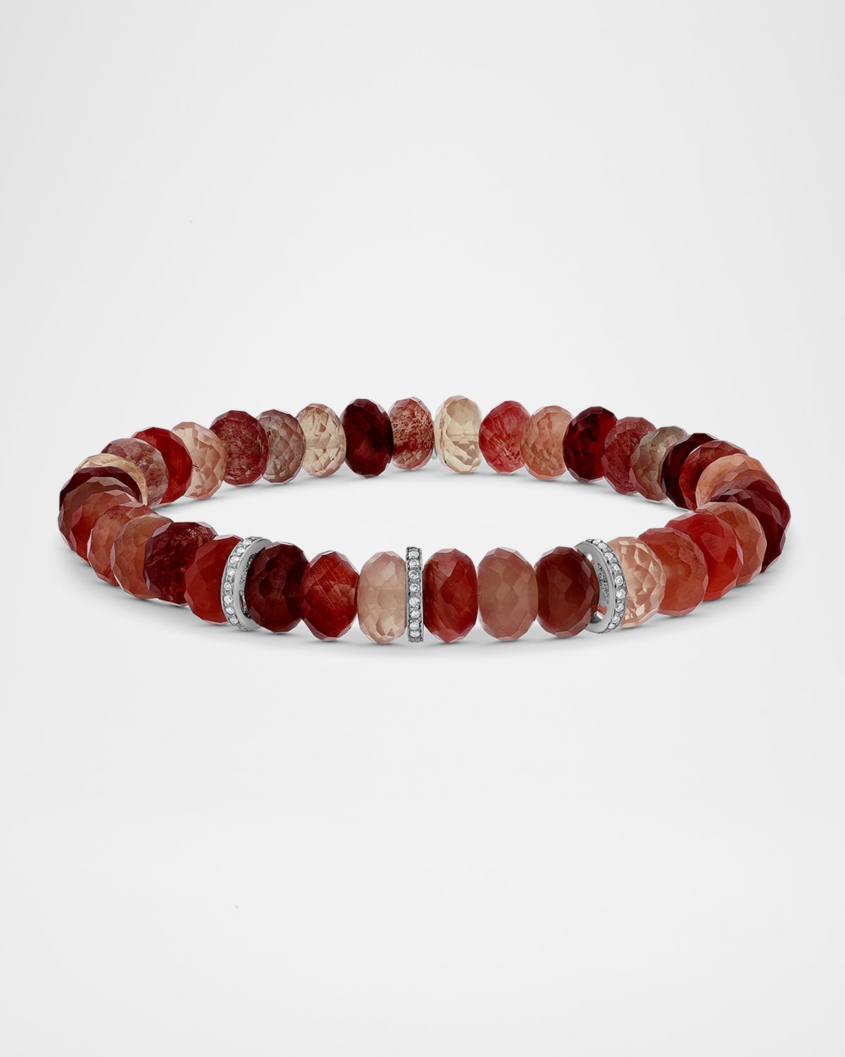 Andesine Labradorite 8mm Bracelet with 3 Pave Diamond Rondelles