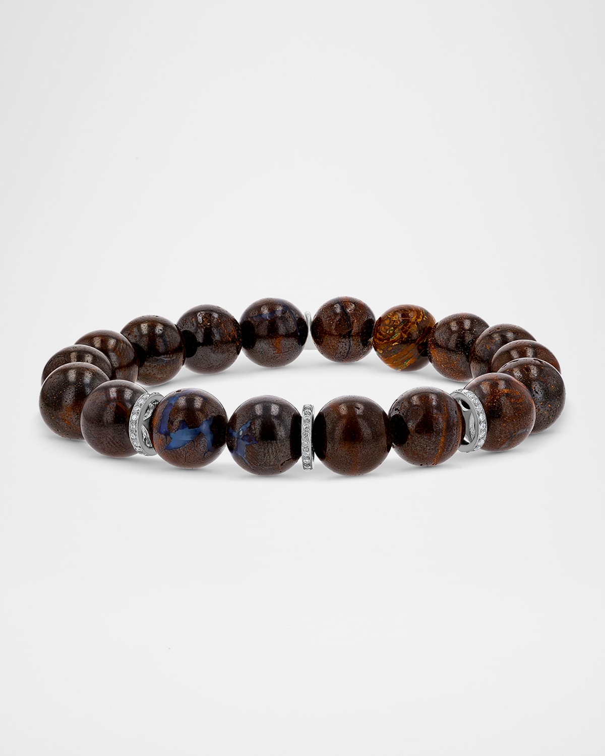 Boulder Opal 10mm Bracelet with 3 Pave Diamond 8mm Rondelles