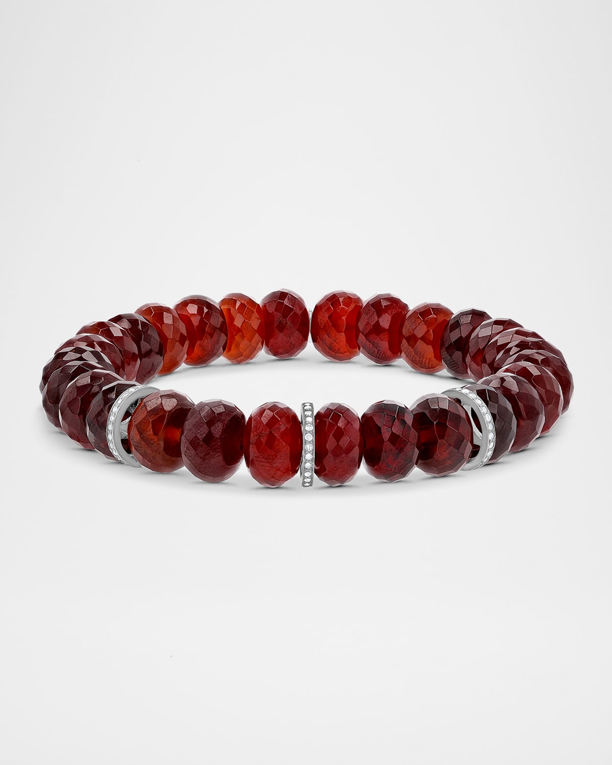 Sheryl Lowe stretch bracelet Sterling silver with pavé diamonds 10mm faceted hessonite garnets Diamond total carat weight: 0.34 Stretchy; slipon style Made in USA