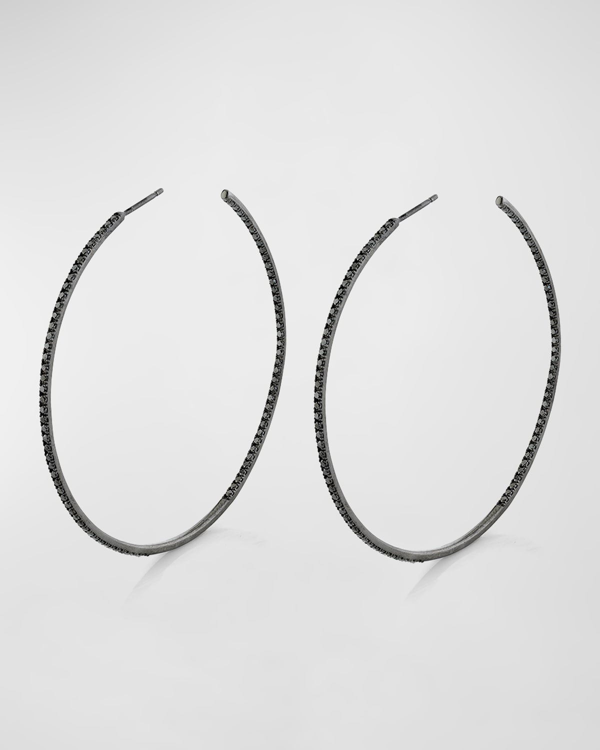 Sheryl Lowe skinny hoop earrings Approx. 58mm diameter Black rhodiumtone sterling silver Pavé black diamonds Total diamond carat weight: 2.10 Post backs for pierced ears Imported