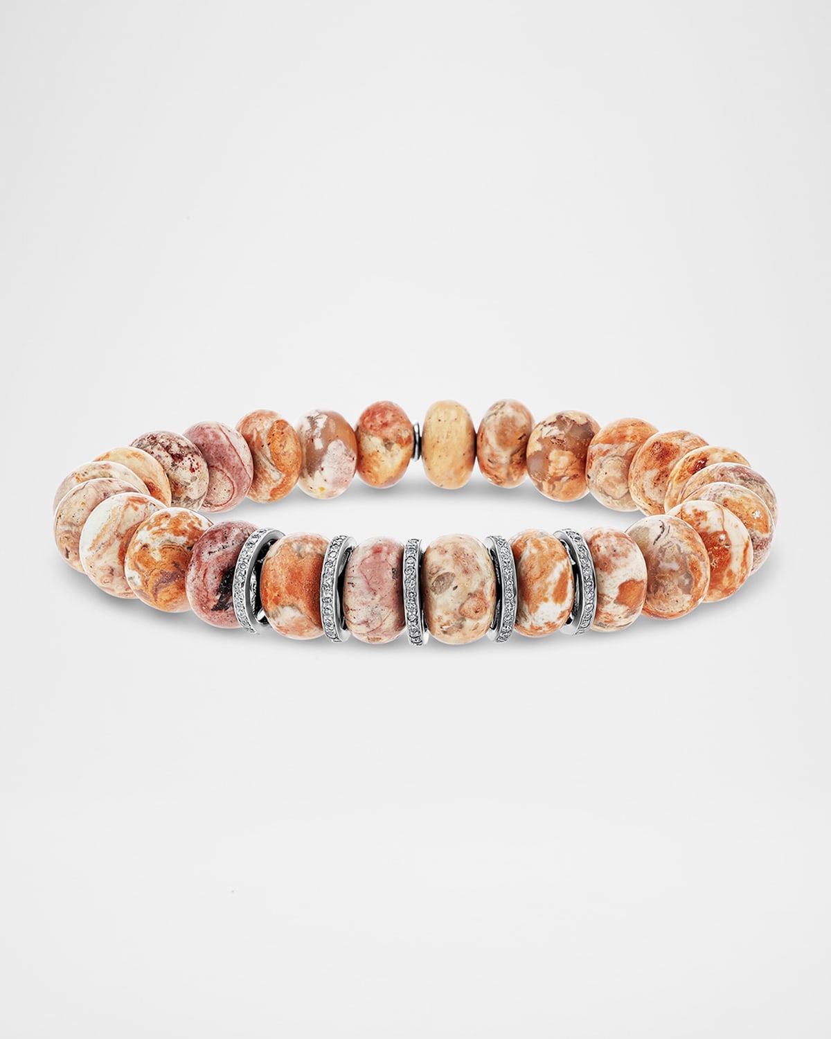 Sheryl Lowe stretch bracelet Sterling silver with pavé diamonds 10mm Mexican fire opal rondelles Diamond total carat weight: 0.56 Stretchy; slipon style Made in USA