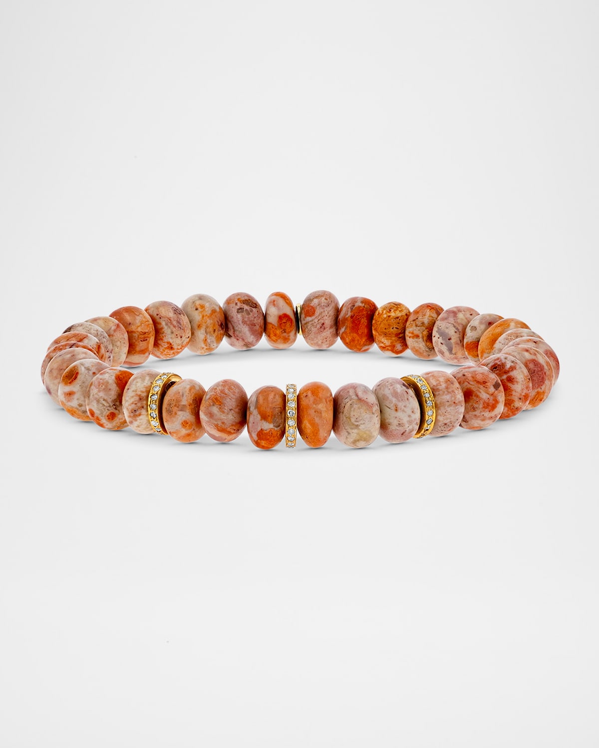 Sheryl Lowe stretch bracelet 14karat gold with pavé diamonds 8mm Mexican fire opal rondelles Diamond total carat weight: 0.27 Stretchy; slipon style Made in USA