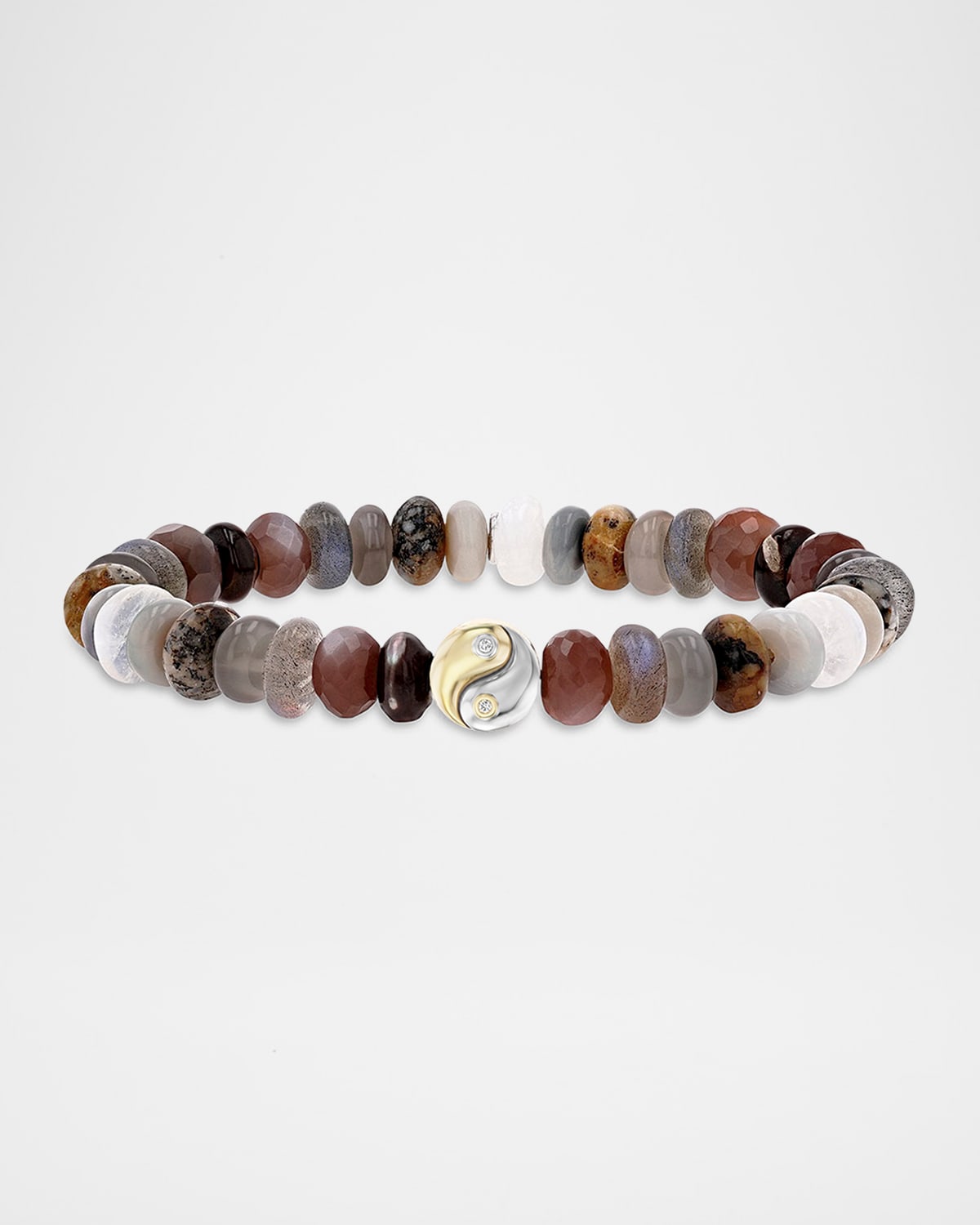 Neutral Gradiant Mix 8mm Bead Bracelet with Two Tone Diamond Bezel Yin Yang Cutie Bead
