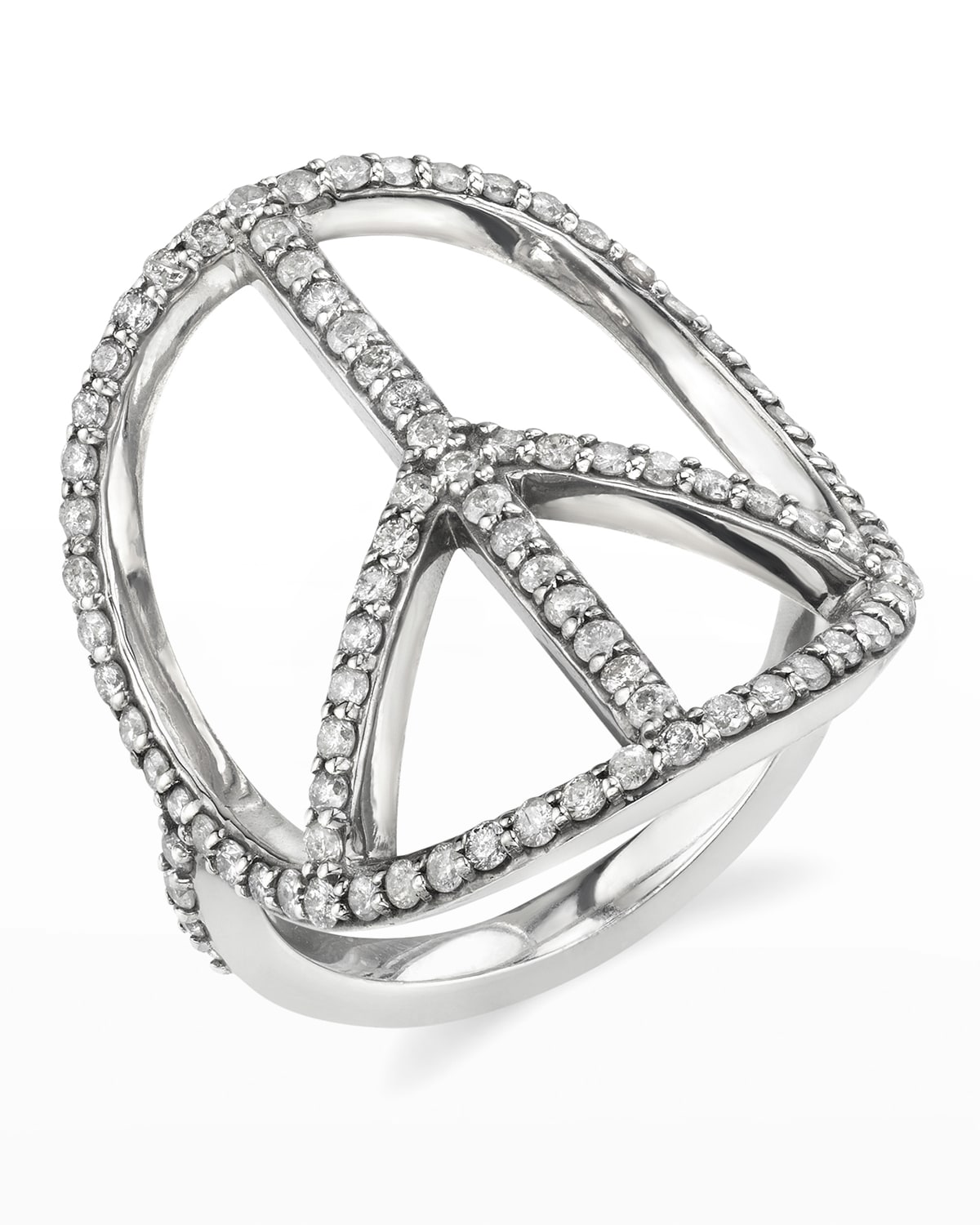 Sheryl Lowe pavé peace sign ring. Sterling silver band and settings. Peace sign with diamond pavé. 0.95 total diamond carat weight. Made in USA.