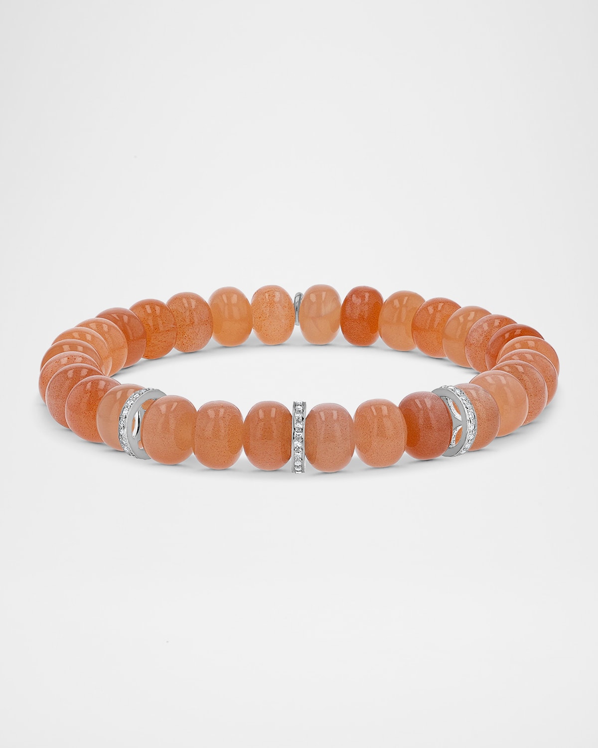 Peach Moonstone 8mm Bracelet with 3 Pave Diamond Rondelles
