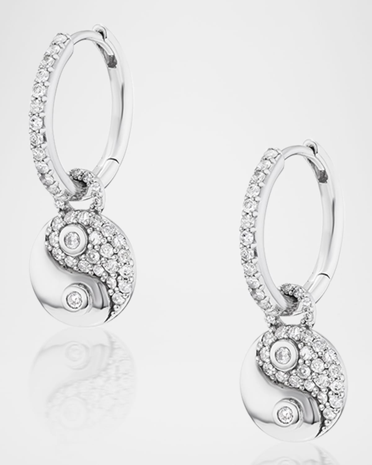 Sterling Silver Yin-Yang Diamond Huggie Earrings