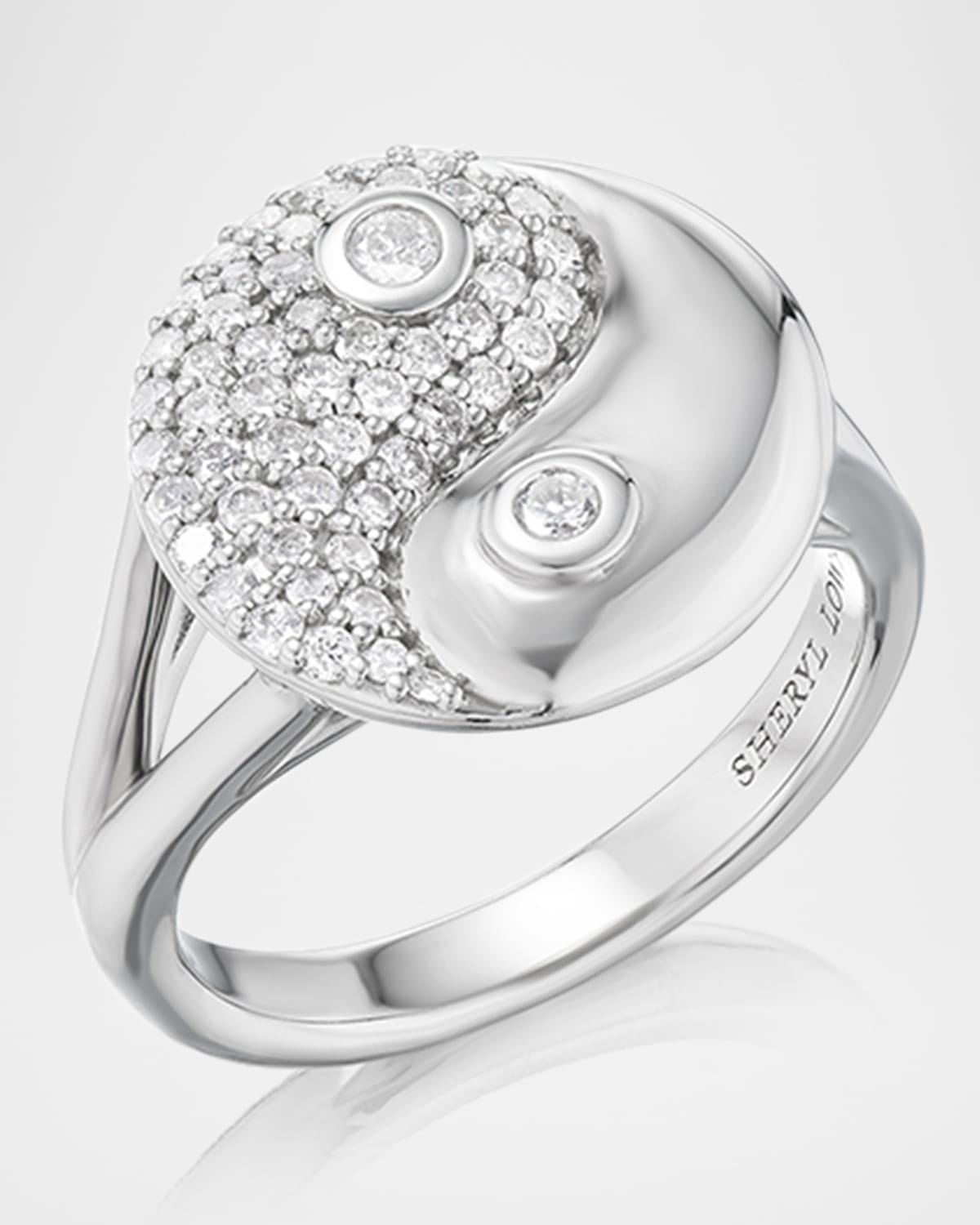 Sterling Silver Yin-Yang Diamond Statement Ring