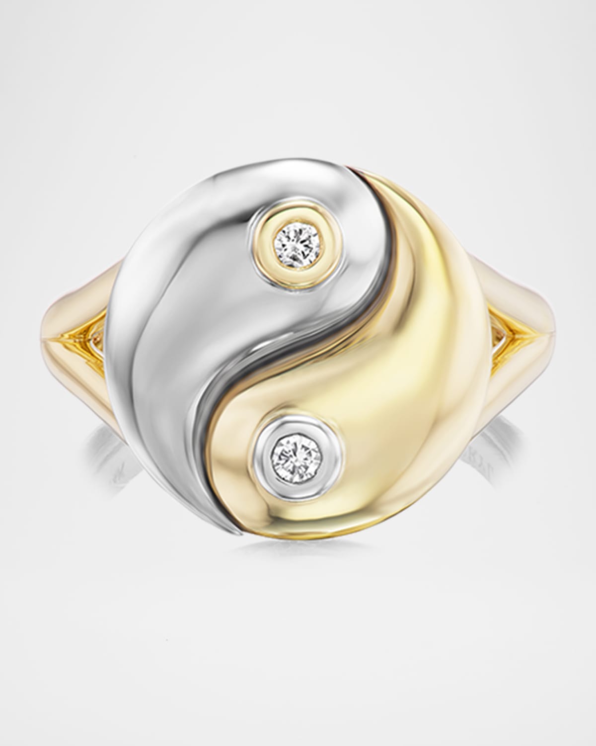 Sheryl Lowe ring with a yinyang motif Sterling silver and 14karat yellow gold Yinyang is set with two diamonds Diamond total carat weight: 0.10 Imported