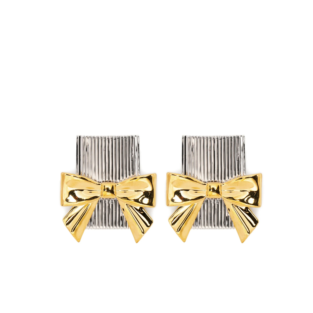 gold silver-tone hardware bow detail textured detail post-back fastening This is a single earring.