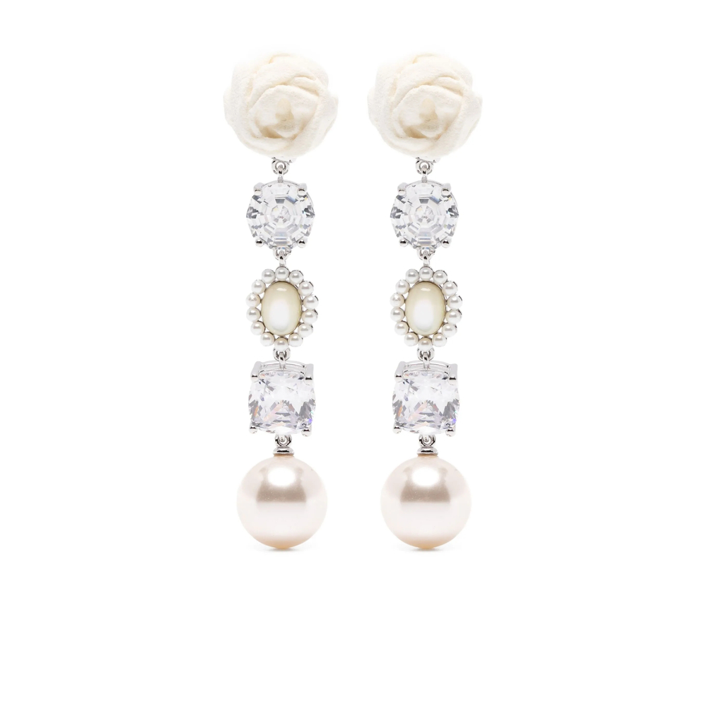 white flower detail pearl detail drop style crystal embellishment silver-tone hardware