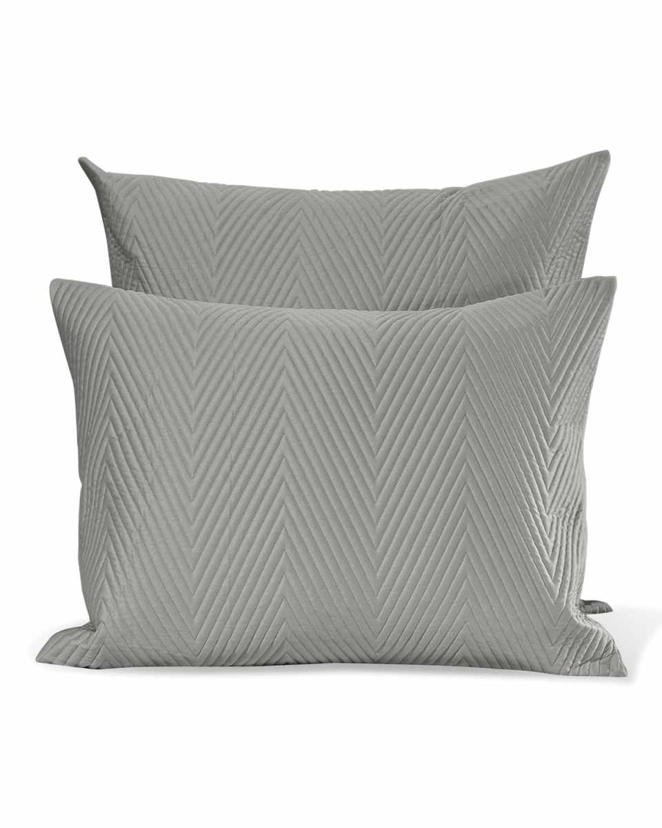 "Letizia" herringbone quilted pattern sham made of longstaple sateen cotton Hidden zip closure 300 thread count 80 gr/sq polyester fill Approx. 21"W x 37"T Item Weight (lbs.): 1.0 Machine wash tumble dry, machine wash warm Made in Italy