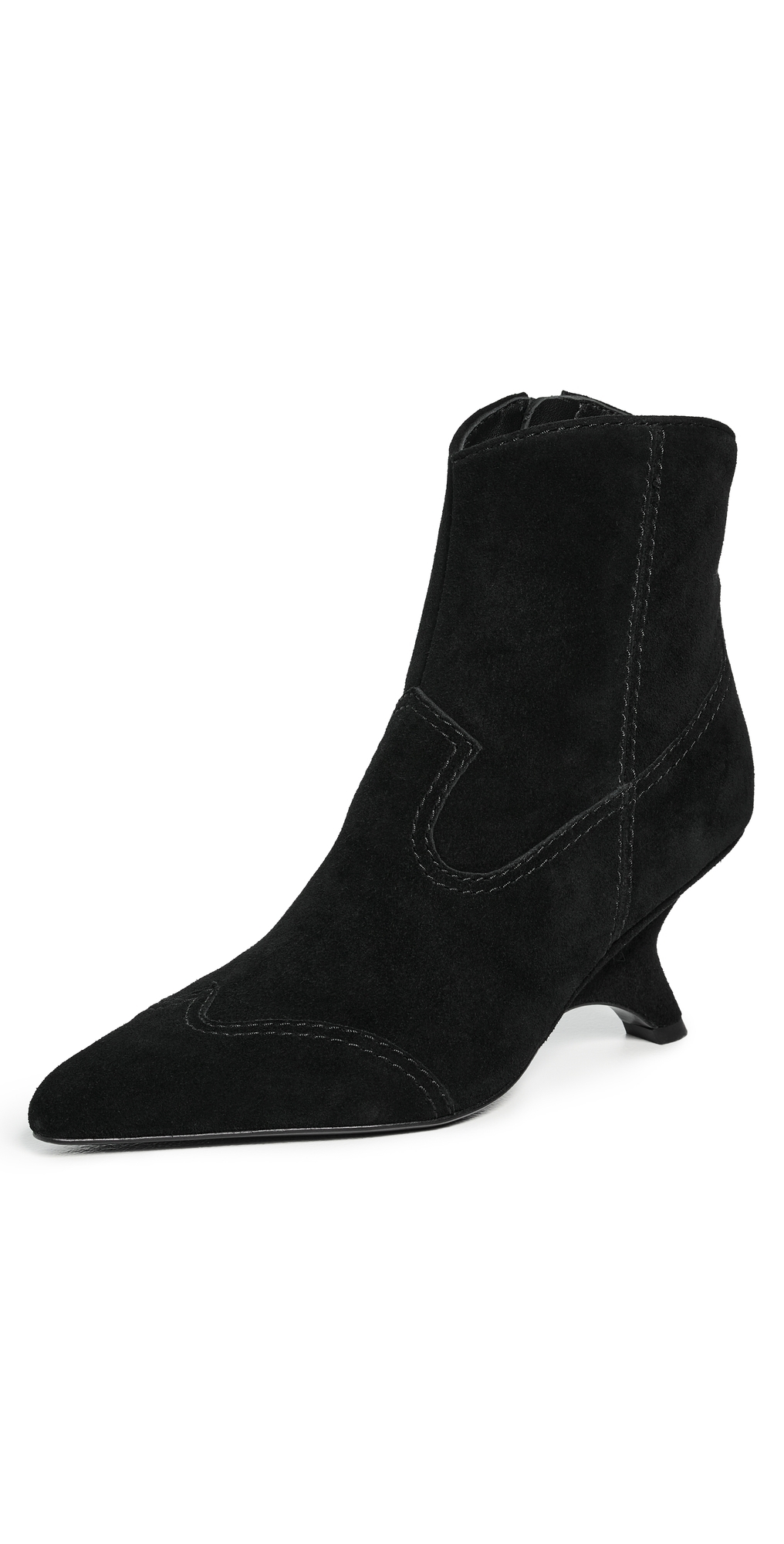 Upper: Calfskin. Lining: Leather. Statement heel. Zip closure. Pointed toe. Leather sole with rubber heel cap. Imported, China. This item cannot be gift-boxed. Measurements: Heel: 3in / 75mm Circumference: 10.75in / 27cm