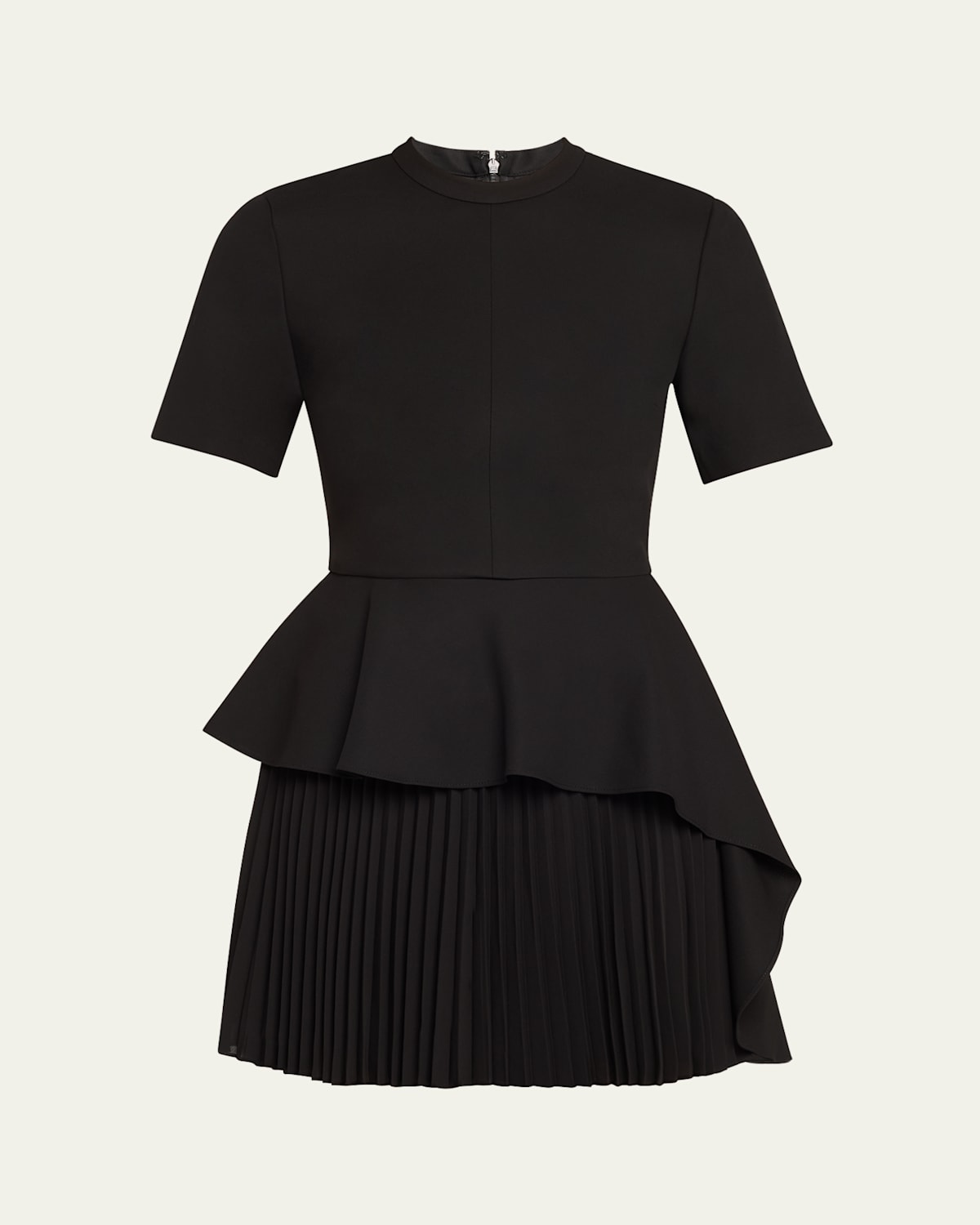 SIMKHAI "Surry" mini dress finished with pleating Crew neckline Short sleeves Aline silhouette Hem falls above the knee Invisible back zip Acetate/polyester Dry clean Imported