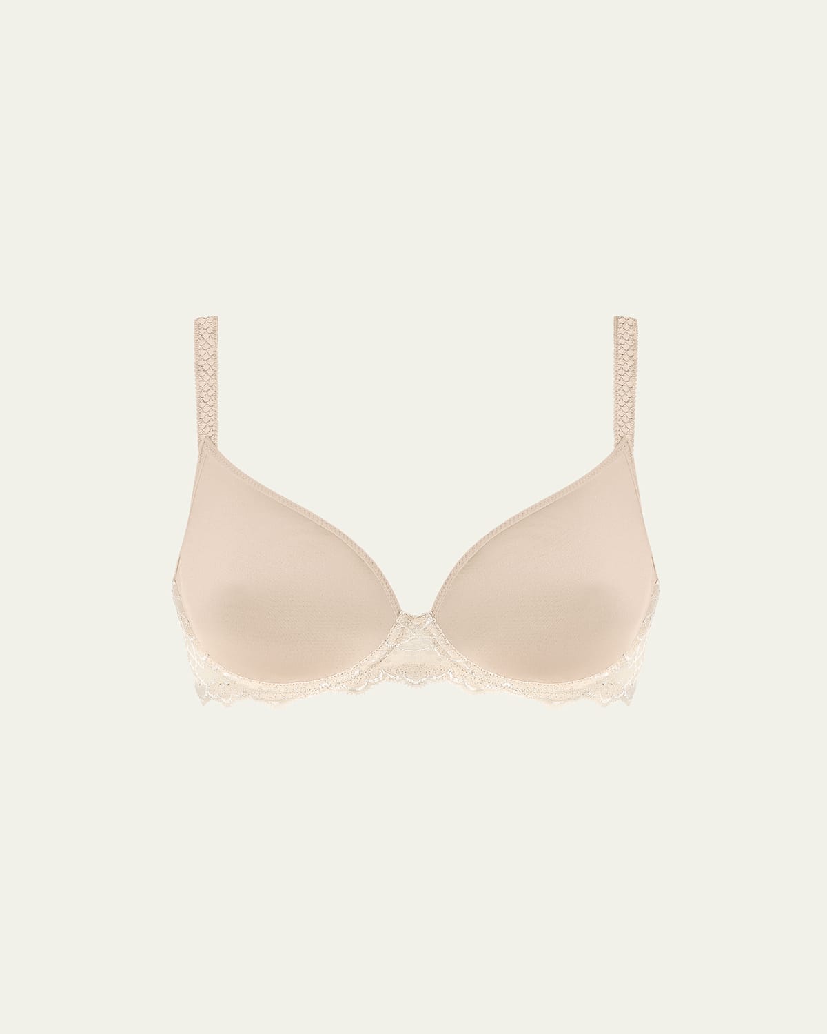 Simone Perele "Caresse" plunge bra. Seamless 3D spacer fabric feels like second skin and doesn't add volume. Lightweight molded Tshirt cups with natural, rounded shape. Aloe verainfused lace lies softly against skin. Adjustable shoulder straps. Hookeye back closure. Polyester/nylon/spandex. Imported. Size Note: Item runs large, consider ordering a size down. Model height: 5'10"/177cm.Fit tips: Bra cups runs deep; recommend sizing down one cup size (example: 32F order 32E, 34G order 34F, 36D order 36C). Band runs true to size.