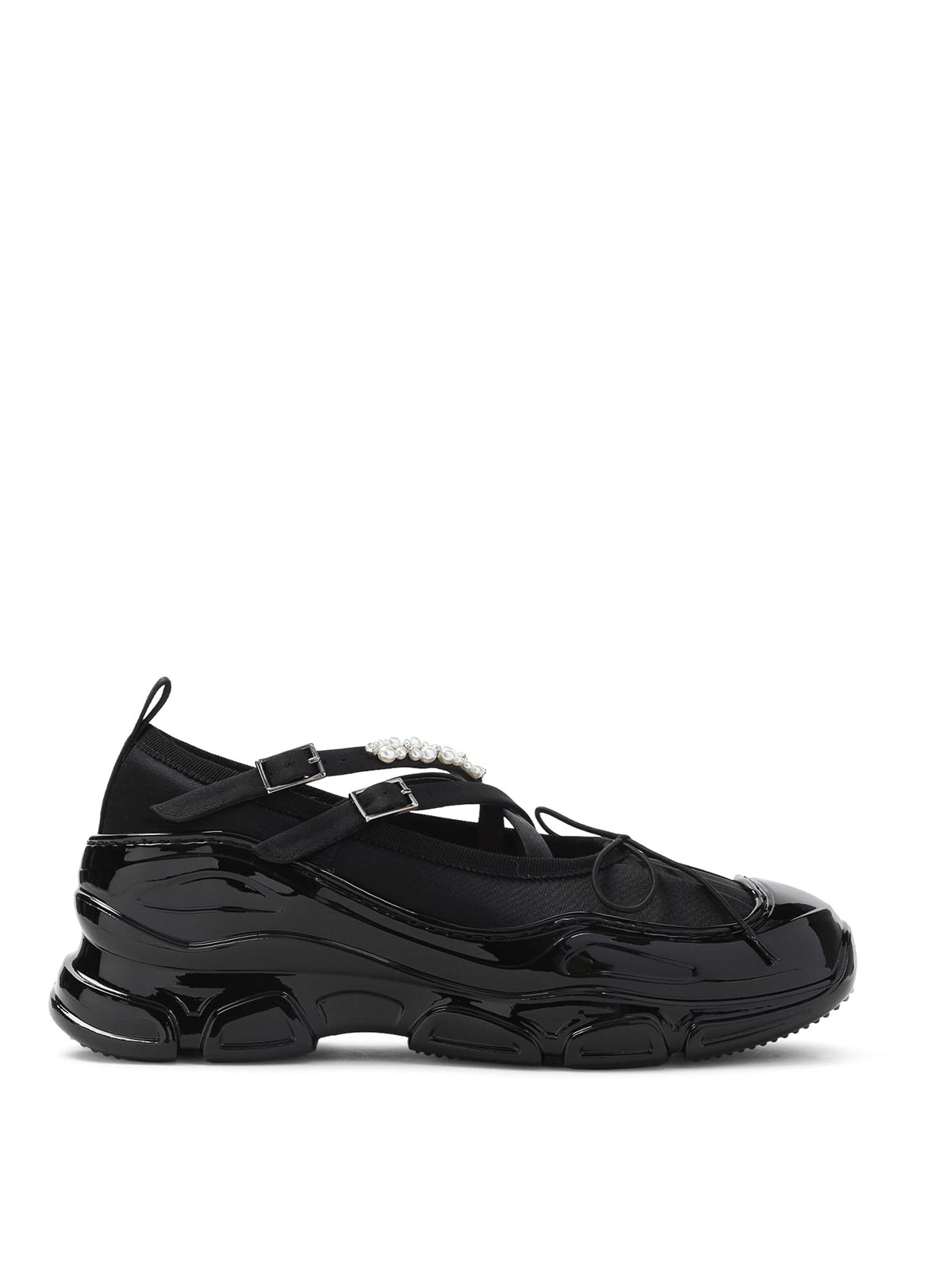 Ballerine noire Simone Rocha Classic Criss Cross Tracker fabriquée en noir, bout en amande renforcé, haut à naud ton sur ton, naud ton sur ton, entrecroisé avec slip, style ton sur ton sur le et sur le