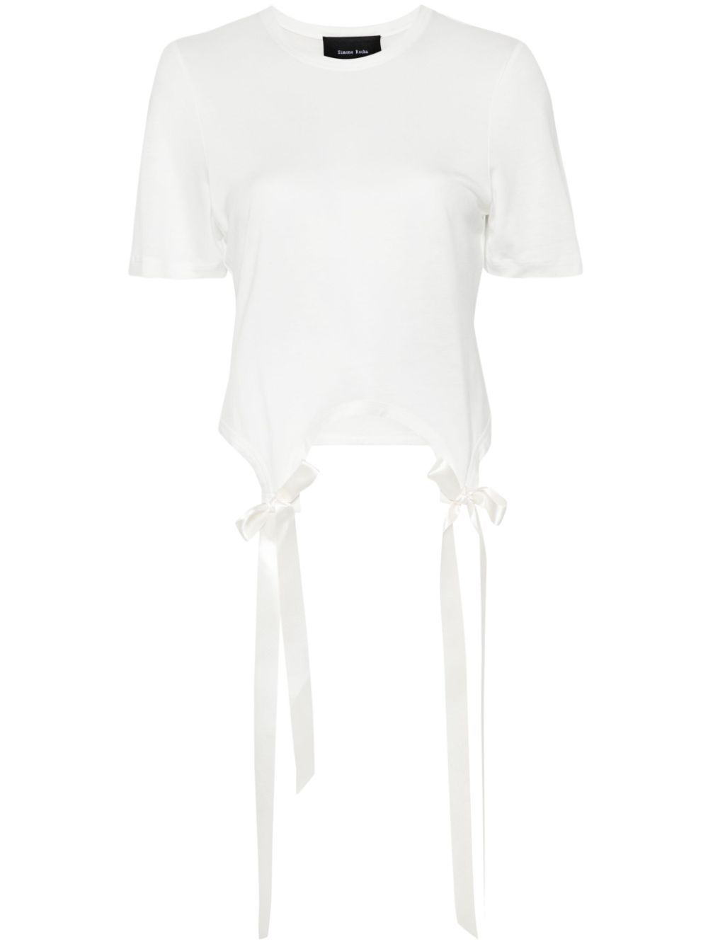 ivory white cotton jersey texture bow detailing at the hem crew neck short sleeves cropped hem