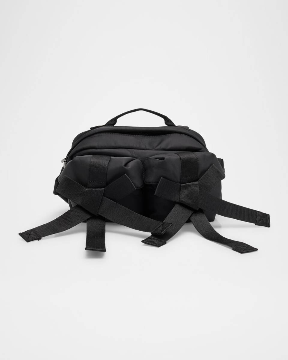 Simone Rocha polyester crossbody bag with bow accents Top handle Crossbody strap, 22"L Can be worn as a top handle or crossbody bag Twoway zip top closure Exterior, two front pouches Lining: Polyester Approx. 4.3"H x 9.8"W x 5.9"D Imported